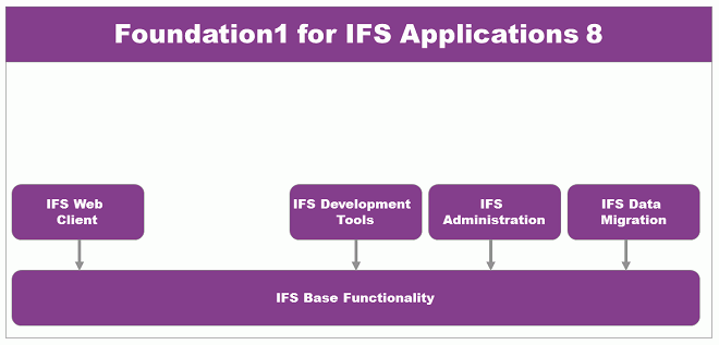 Foundation1 is packaged as a product, and like any other IFS solution it consists of a number of product components.