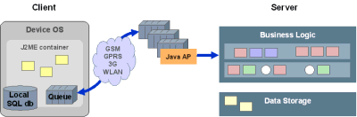 IFS Mobile Client runs inside a J2ME container on multiple types of devices. Transactions are sent encrypted over any network link directly to the services layer in IFS Applications.