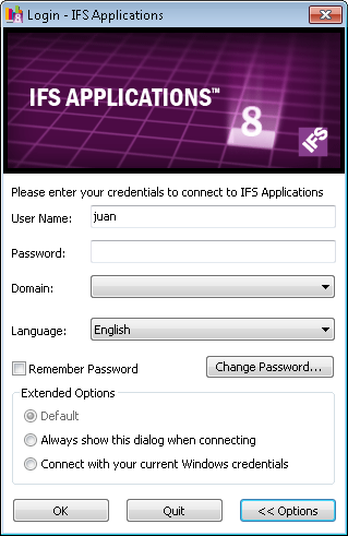 The login dialog contains options that can be enabled/disabled by configuration in the runtime directory.