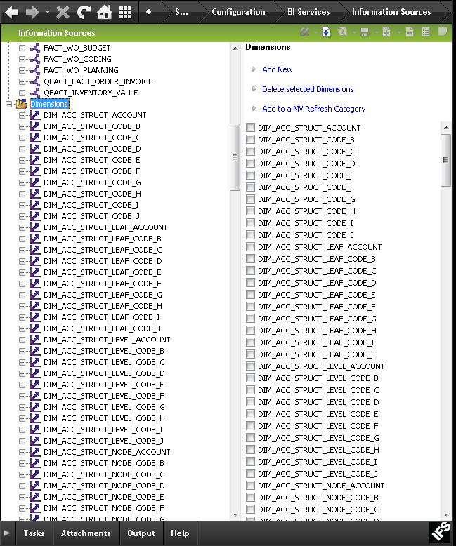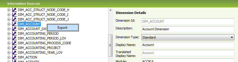 The Information Source feature opens a navigator listing not only available Information Sources but also all existing dimensions.