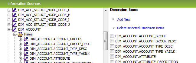 DIM_ACCOUNT.CODE orDIM_ACCOUNT.DESCRIPTION However if we specify DIM_ACCOUNT.ACCOUNT_GROUP then this is an