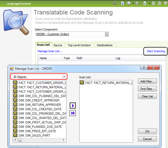 - Select BI Object type in the combo box (refer Figure3: Scan BI