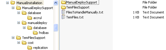 Files inside ManualDeploySupport and TemFilesSupport folders are the files that are not merged to the install.tem file. All files inside TemFilesSupport folder can be deployed by deploying the template files shown here. But regarding files inside ManualDeploySupport user need to analyze and decide whether need to be deployed or not. There can be two folders inside ManualDeploySupport folder as database and manualdeploy. Files in database folder are those that are not included in any template file and user should analyze whether these should be deployed or not. Files in manualdeploy are files that are in manualdeploy folder of component structure and user need to check and deploy these files.